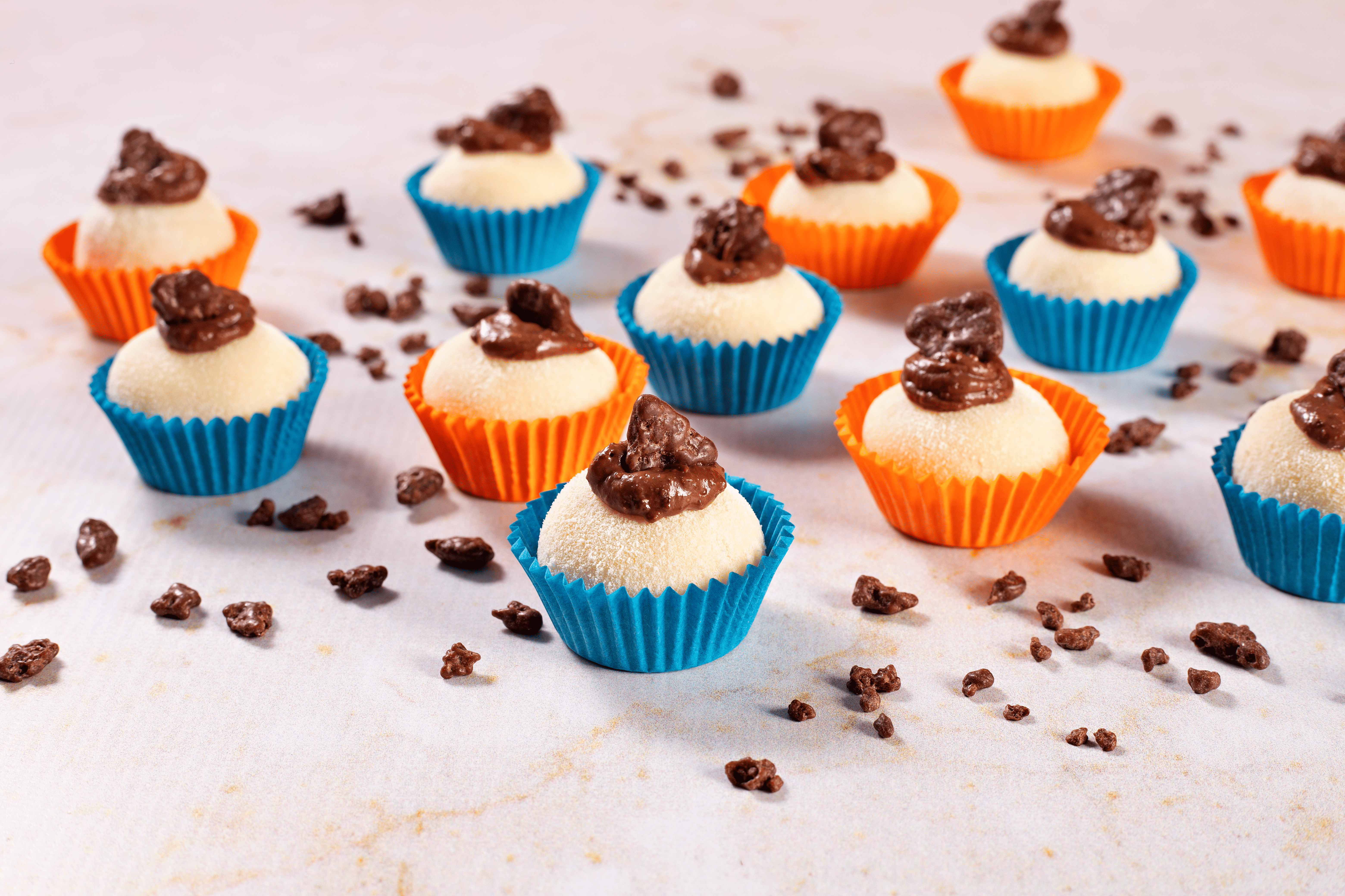 - Faça um furinho no brigadeiro, preencha com o Ovomaltine® Creme Crocante;