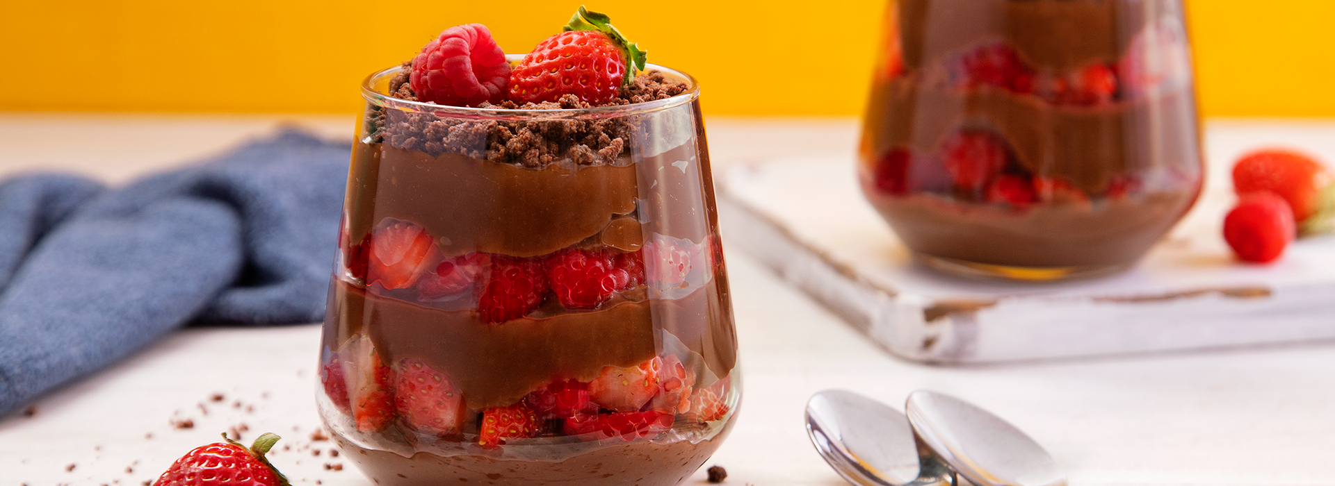 - Disponha no fundo das taças uma camada do creme, em seguida de frutas vermelhas picadas e vai intercalando.